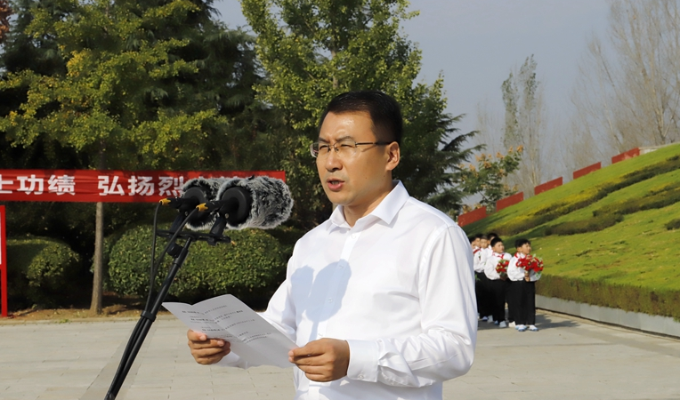 在庄严肃穆的氛围中,陈永生宣读祭文。他说,滕州是一个有着深厚历史文化传承的革命老区,也是一片有着光荣革命传统的红色沃土。在风雨如磐的革命战争年代,为了拯救民族危亡,一大批优秀滕州儿女,前仆后继、浴血奋战,为实现民族独立和人民解放而壮烈牺牲。他们用鲜血和生命谱写了感人至深的英雄赞歌,铸就了高耸云天的历史丰碑。他们不愧为人民的英雄,不愧为中华民族的优秀儿女,他们的英雄事迹、革命精神和丰功伟绩,永远值得铭记,永远激励我们奋勇向前。