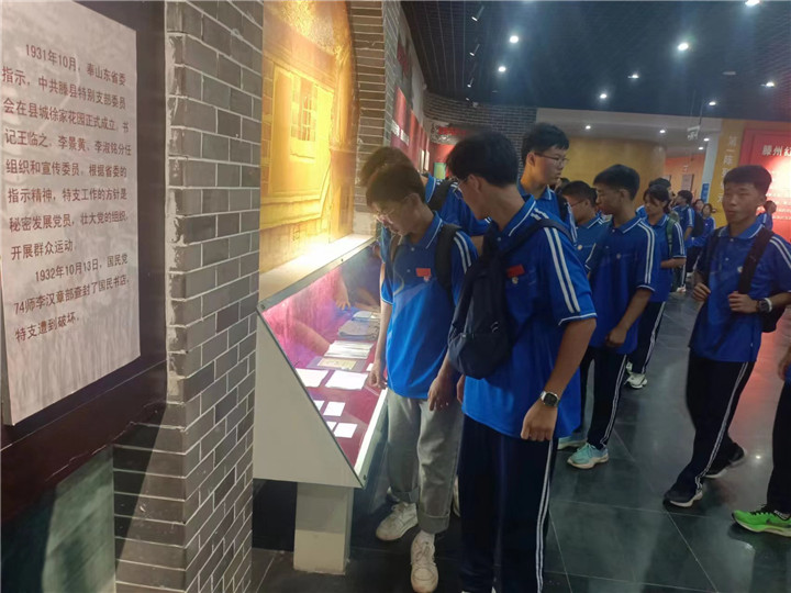 革命纪念馆是红色文化的重要载体和宣传阵地,承担着存史、资政、育人、励志的重要功能,对弘扬和传承红色文化、革命精神有着不可替代的积极作用。全体入学新生首先参观的是鲁南人民抗日武装起义纪念馆,追忆人民英雄的丰功伟绩,感恩今天的幸福美好生活。同学们边听讲解员讲解,边观看图片、影视资料、实物、雕塑、复原场景,使大家对滕州的革命历史有了更深的认识和理解。同学们行走在纪念馆的各个展区,宛如穿越时光隧道,一幕幕催人奋进、荡气回肠的革命故事在这里闪现,将同学们拉回到那个血与火的峥嵘岁月,回顾滕州党政军民水乳交融、生死与共的光辉历程和军民薪火传承、砥砺奋进的光辉岁月。