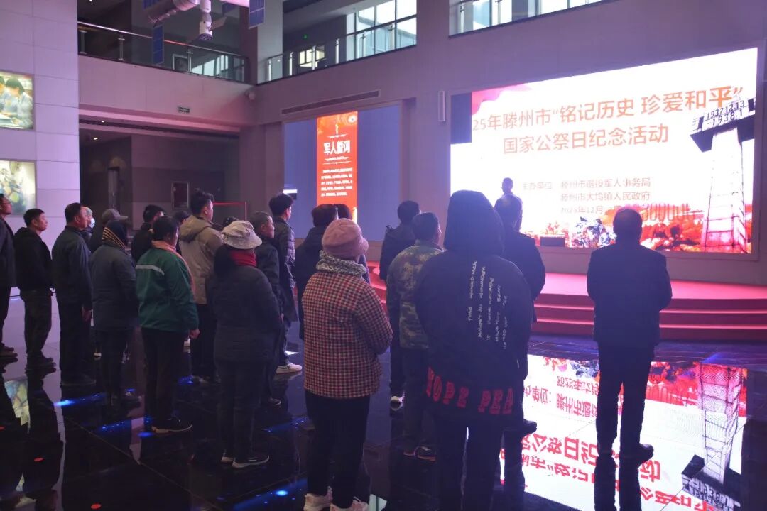 岁月无声,丰碑为证。12月13日,为纪念第十二个国家公祭日,弘扬爱国主义精神,由滕州市退役军人事务局指导由滕州市烈士陵园(国防科技教育基地)联合滕州市大坞镇政府承办的滕州市国家公祭日“铭记历史 珍爱和平”主题活动在滕州市烈士陵园(国防科技教育基地)举行。滕州市退役军人事务局联合大坞镇政府共计40余人参加活动。